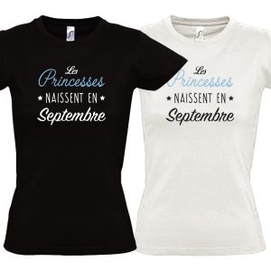 T-shirt femme Les princesses naissent en, t-shirt personnalisé avec votre mois de naissance