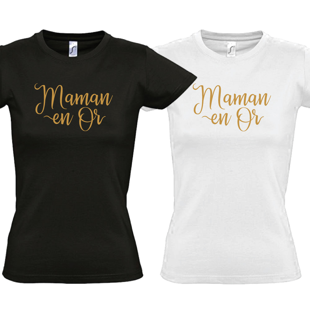 T-shirt Maman en or, noir ou blanc, flex or premium, cadeau anniversaire, fête des mères, tshirt maman