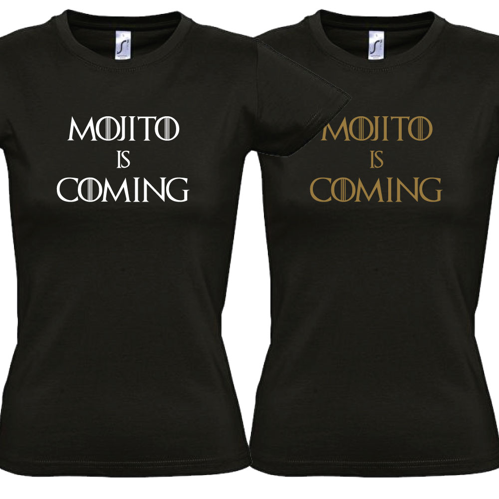 T shirt mojito is coming, parodie Game of Thrones, t-shirt humour, motif blanc ou or