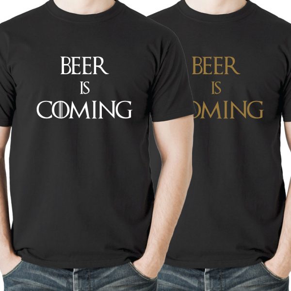 T-shirt noir beer is coming, motif blanc ou or, parodie Game of Thrones