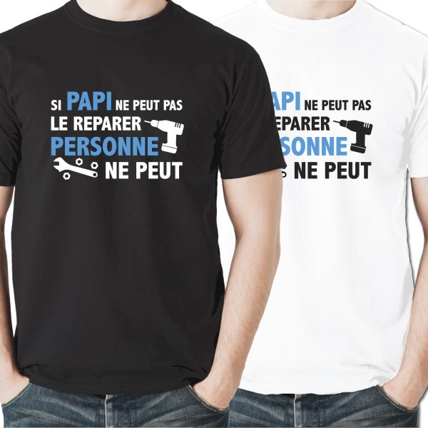 T-shirt noir ou blanc si papi ne peut pas le réparer personne ne peut, cadeau papi, t-shirt papi, t-shirt papy