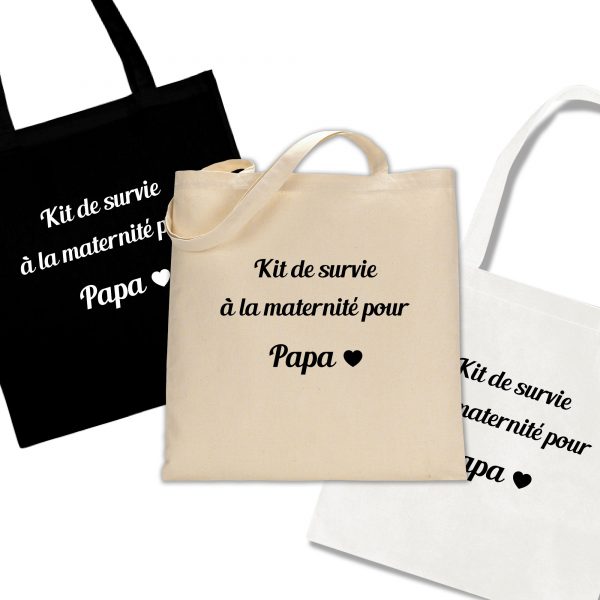 Tote bag Kit de survie à la maternité pour papa, disponible en natural, blanc ou noir, texte à personnaliser